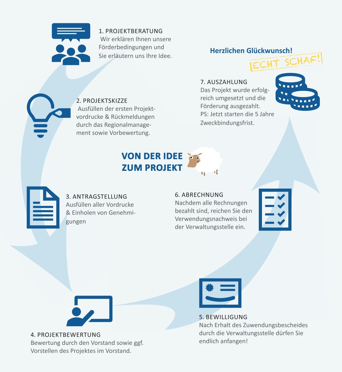 Ausfüllen aller Vordrucke und Einholen von Genehmigungen. Bitte reichen Sie die Projektunterlagen fristgerecht beim Regionalmanagement ein, gern auch zunächst per E-Mail. Die Frist endet jeweils sechs Wochen vor der Vorstandssitzung. Bis zur Vorstandssitzung sind alle Antragsunterlagen im Original an das Regionalmanagement zu senden.