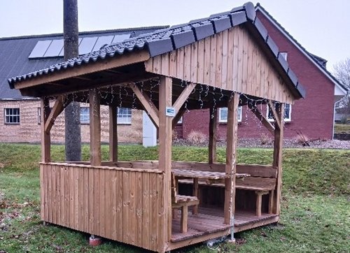 Aus der Huder Dorfgemeinschaft wurde der Wunsch an die Gemeinde herangetragen, einen Pavillon zu errichten, um die Qualität und Attraktivität der Freizeitangebote innerhalb der Gemeinde zu steigern.